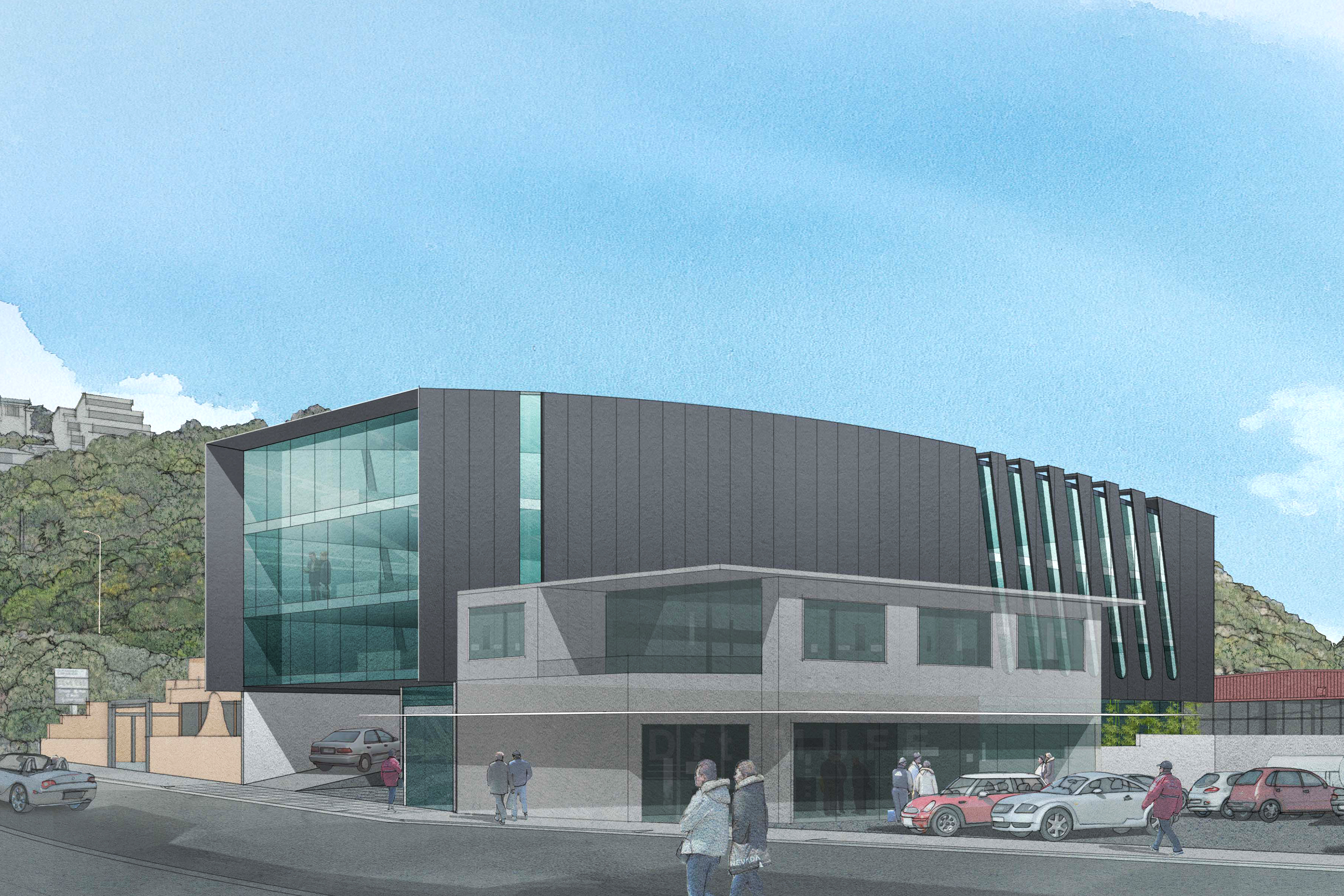 Design for a mixed-use commercial development and signature building for Autostop Group in Johnsonville. Advanced seismic structural and pre-fabrication techniques. Cost time and energy efficient design.