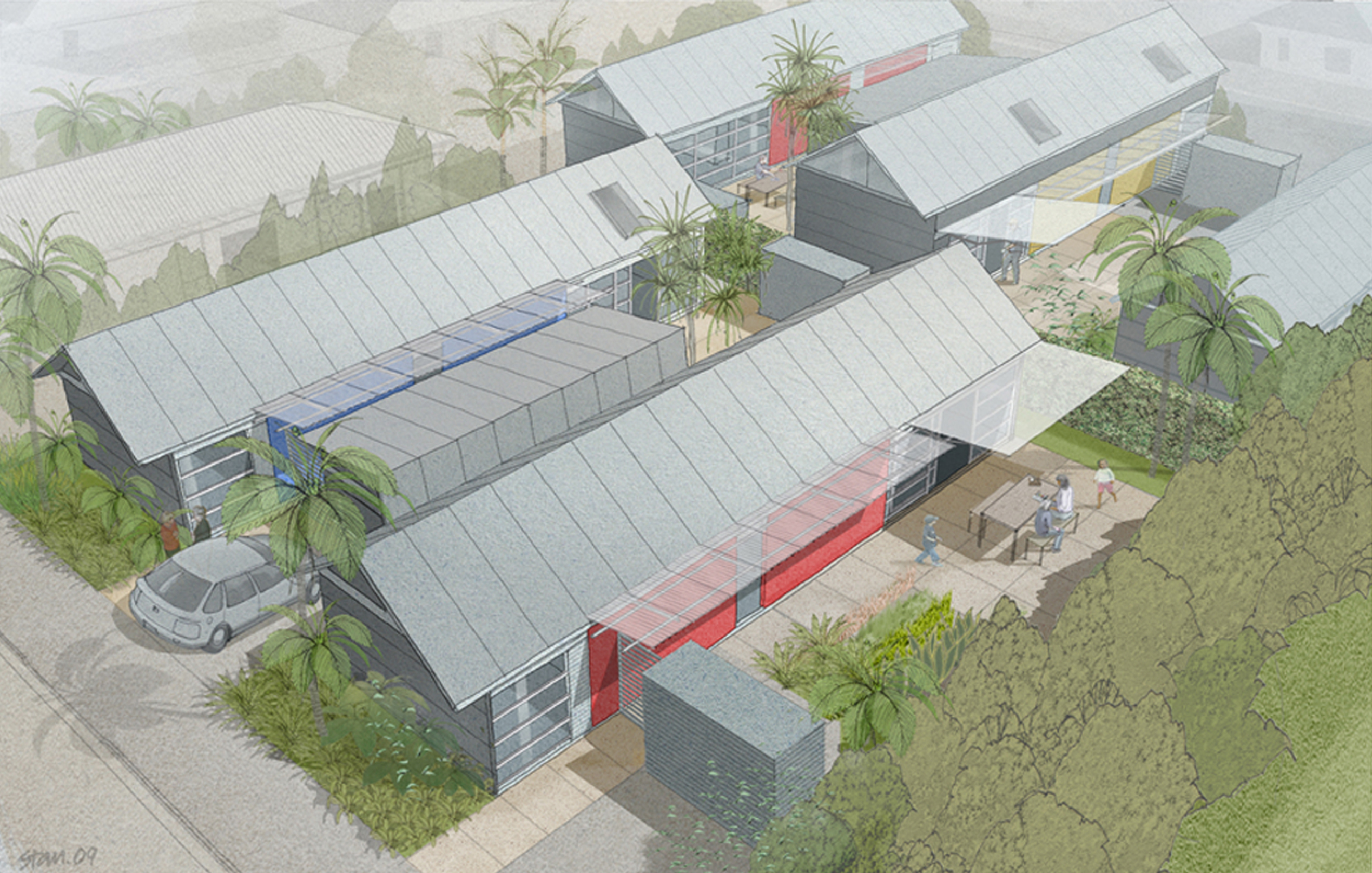 Starter Home National Finalist. These 'solar courtyard' houses are designed so that meter rates are extremely streamlined.